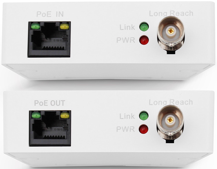 We are introducing the easiest thing you will do on any installation. This simple 2 unit kit converts a BNC/coax analog camera to run directly to an IP camera and NVR by transmitting both the data signals and PoE power over the coax and converting back to an RJ-45 at the camera. This pair of EOC-202s makes for a quick, plug-n-play BNC to IP conversion.