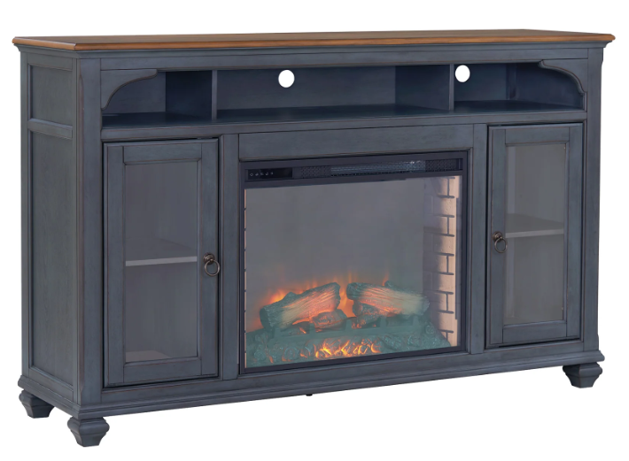 The Americana 66" Fireplace TV Stand combines classic charm with modern functionality. Its Corduroy Blue finish and gentle distressing evoke a coastal vibe, while the brushed hardware adds a touch of elegance. Perfect for cozy evenings, this piece brings the timeless appeal of the Americana Collection into your living space.Read More
