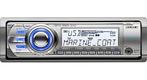 | Description: | Marine CD receiver with built-in amplifier (17 watts RMS CEA-2006/52 peak × 4 channels) Plays CDs, CD-Rs, and CD-RWs, including discs loaded with MP3, WMA and AAC files Fold-down face with switchable blue/red illumination Works with Sony Marine Commander wired remotes Coated circuit boards, UV- and salt-resistant paint EQ3 (seven preset tone curves and a 3-band equalizer) Built-in iPod control with USB connection Compatible with optional satellite radio, HD Radio tuner, CD changer Inputs: front-panel auxiliary input, rear USB input Outputs: 6-channel preamp outputs (front, rear, subwoofer) |