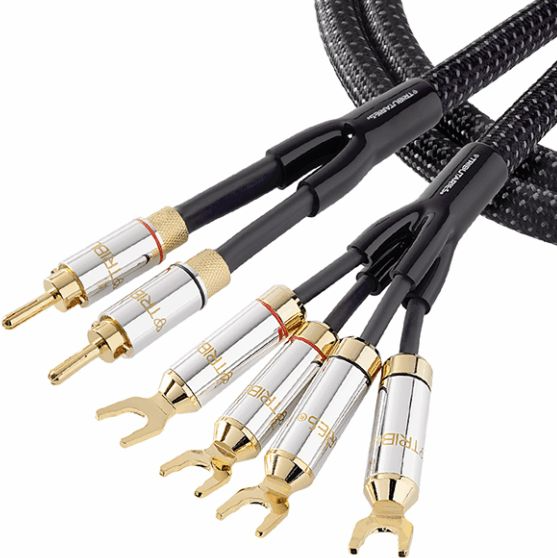 All Series 8 audio cables are meticulously assembled by hand in Orlando, Florida. Series 8 Mark II Bi-Wire speaker cables begin with extremely high-grade linear crystal copper (LC-OFC) developed specifically for audio applications. Tributaries LC-OFC is carefully drawn to produce a low crystal volume per foot resulting in less signal loss and distortion. Conductors consist of multiple solid gauges that are mathematically and tonally chosen to support low, mid and high frequencies for a natural sounding cable. Individually insulating each conductor yields zero strand interaction and better sound quality. It is important to understand that music passing through the speaker cable, is actually an AC voltage, so when voltage passes through twisted wire, there will be additional magnetic fields. Tributaries Star-Quad design not only alternates the positive and negative signal conductors but also alternates the twisted lays in each multi-gauge conductor. Alternating lays cancels all levels of magnetic distortion. The Mark II cables are silver soldered onto proprietary spade lugs and locking banana plug connectors made with Tellurium (TE) copper increasing conductivity and strength. The end result is a dead-quiet neutral sounding cable that accurately produces the sound of live music.Read More