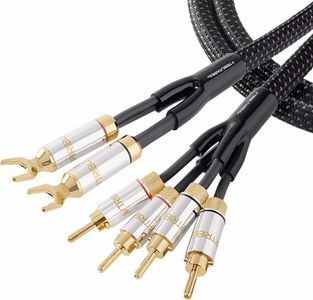 All Series 8 audio cables are meticulously assembled by hand in Orlando, Florida. Series 8 Mark II Bi-Wire speaker cables begin with extremely high-grade linear crystal copper (LC-OFC) developed specifically for audio applications. Tributaries LC-OFC is carefully drawn to produce a low crystal volume per foot resulting in less signal loss and distortion. Conductors consist of multiple solid gauges that are mathematically and tonally chosen to support low, mid and high frequencies for a natural sounding cable. Individually insulating each conductor yields zero strand interaction and better sound quality. It is important to understand that music passing through the speaker cable, is actually an AC voltage, so when voltage passes through twisted wire, there will be additional magnetic fields. Tributaries Star-Quad design not only alternates the positive and negative signal conductors but also alternates the twisted lays in each multi-gauge conductor. Alternating lays cancels all levels of magnetic distortion. The Mark II cables are silver soldered onto proprietary spade lugs and locking banana plug connectors made with Tellurium (TE) copper increasing conductivity and strength. The end result is a dead-quiet neutral sounding cable that accurately produces the sound of live music.Read More